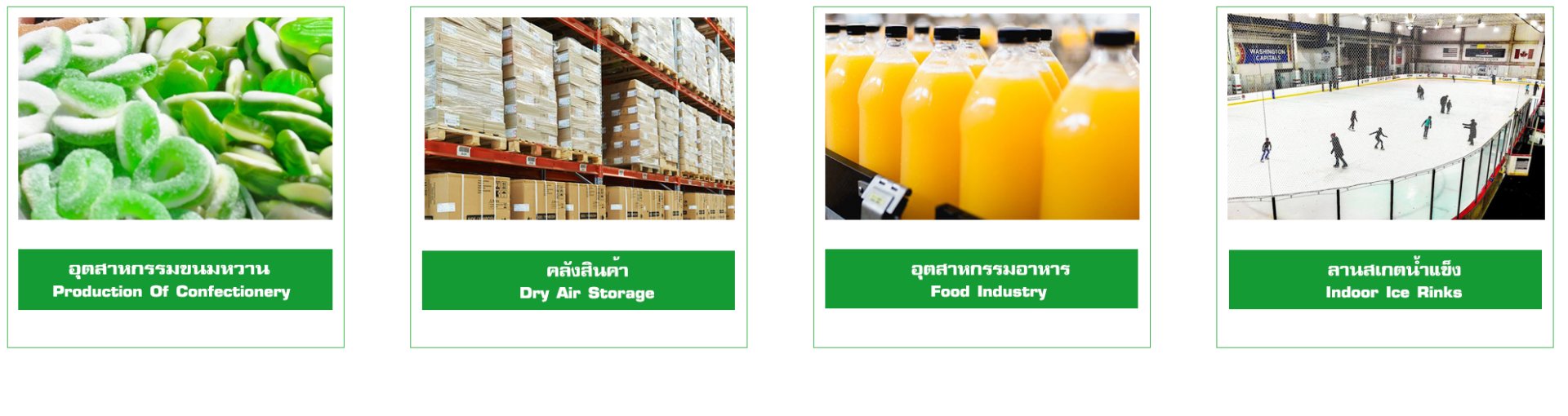 การนำไปใช้งานของเครื่องลดความชื้นแบบดูดซับ Desiccant dehumidifier ได้แก่ห้องที่ต้องการควบคุมความชื้นต่ำ ซึ่งเครื่องลดความชื้น Desiccant dehumidifier ''DST'' นี้สามารถทำงานได้ในห้องที่มีอุณหภูมิต่ำและต้องการค่าความชื้นต่ำ เช่น ห้องเก็บเมล็ดพันธุ์พืช ห้องผลิตยา กระจกนิรภัย หรือสินค้าในห้องเย็น การทำงานในห้องที่อุณหภูมิต่ำ เครื่องลดความชื้น Desiccant dehumidifier ''DST'' คือคำตอบที่เหมาะสม